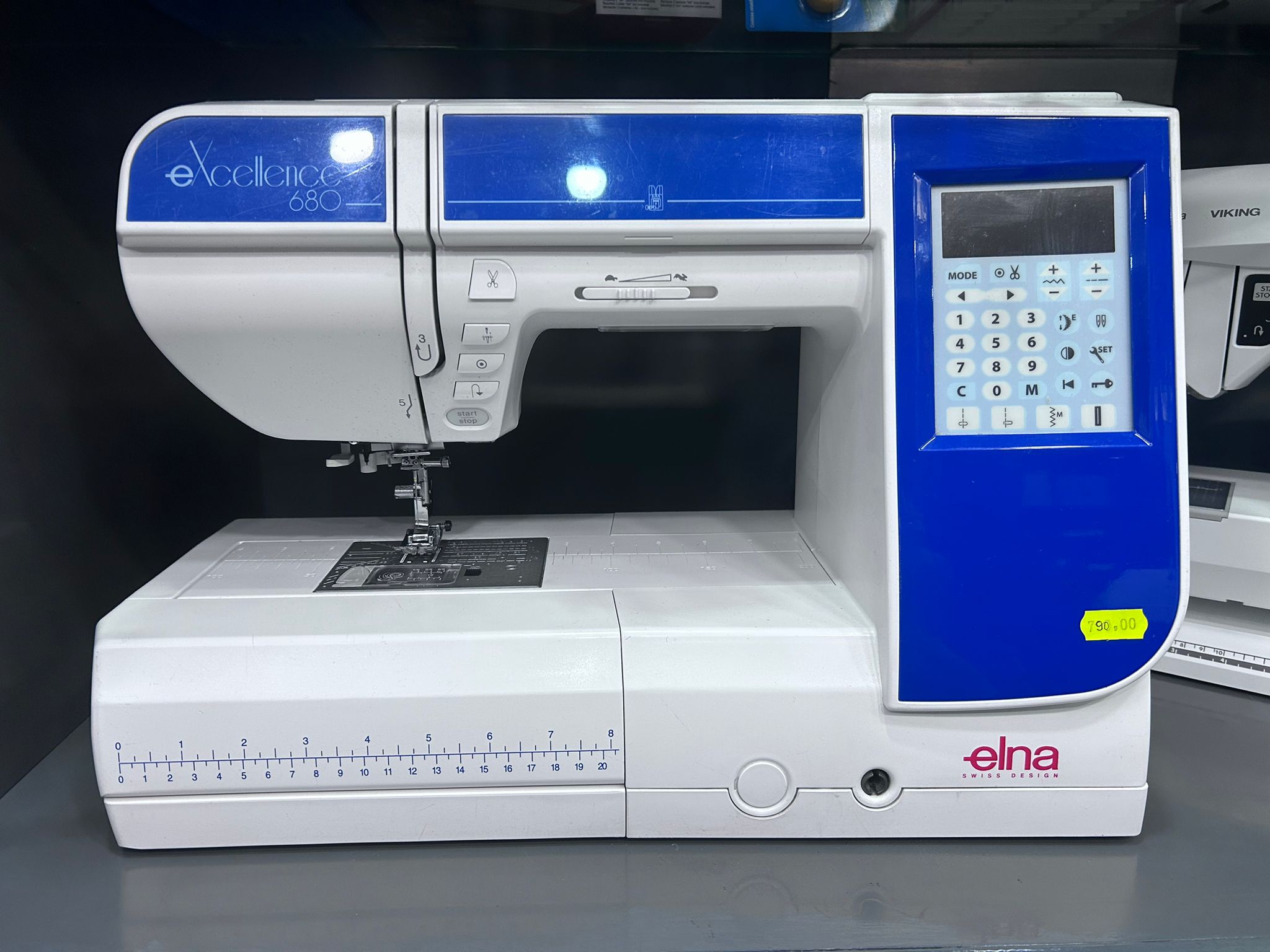 Elna 680 elettronica usata con garanzia esegue 170 punti sia utili che decorativi, 4 alfabeti, 10 tipi di asole, ampio spazio di cucitura,rasafilo, tasto start stop e molto altro